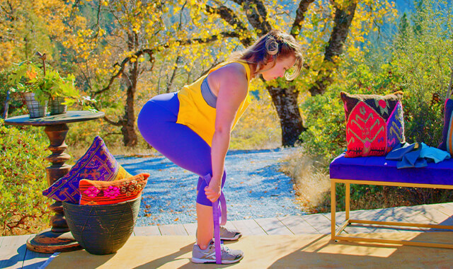 - Set your weights on elevated objects (placed on the sides of your legs), so that you don’t have to bend down as far.